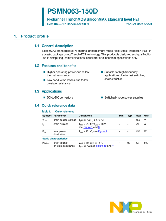 PSMN063-150D N-channel TrenchMOS SiliconMAX standard level FET