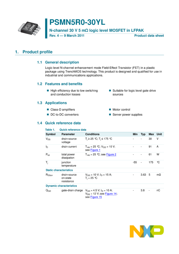 PSMN5R0-30YL N-channel 30 V 5 mΩ logic level MOSFET in LFPAK