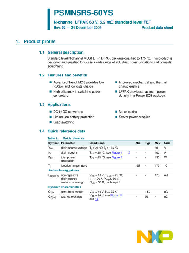 PSMN5R5-60YS N-channel LFPAK 60 V, 5.2 mΩ standard level FET