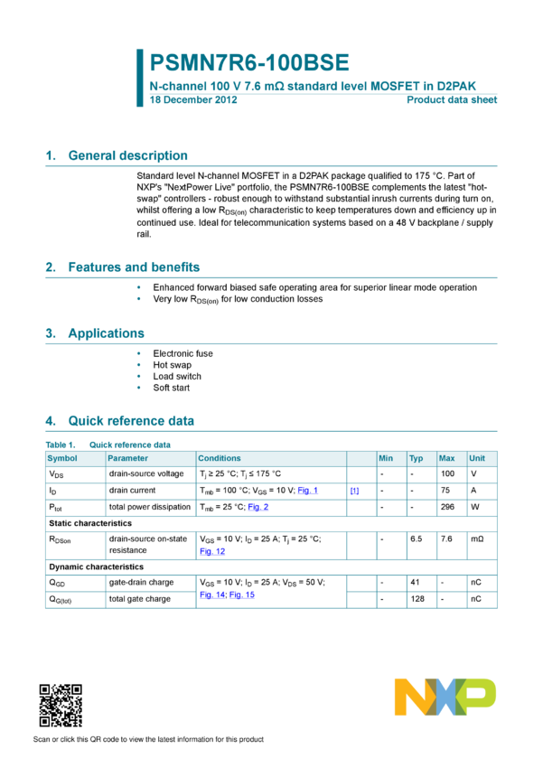 PSMN7R6-100BSE N-channel 100 V 7.6 mΩ standard level MOSFET in D2PAK