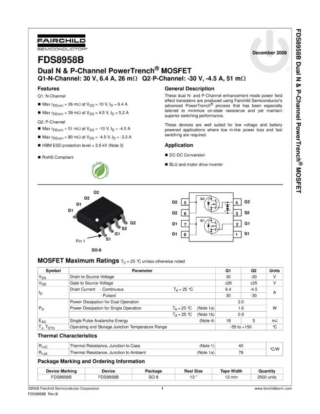 FDS8958B 30V Dual N & P-Channel PowerTrench® MOSFET