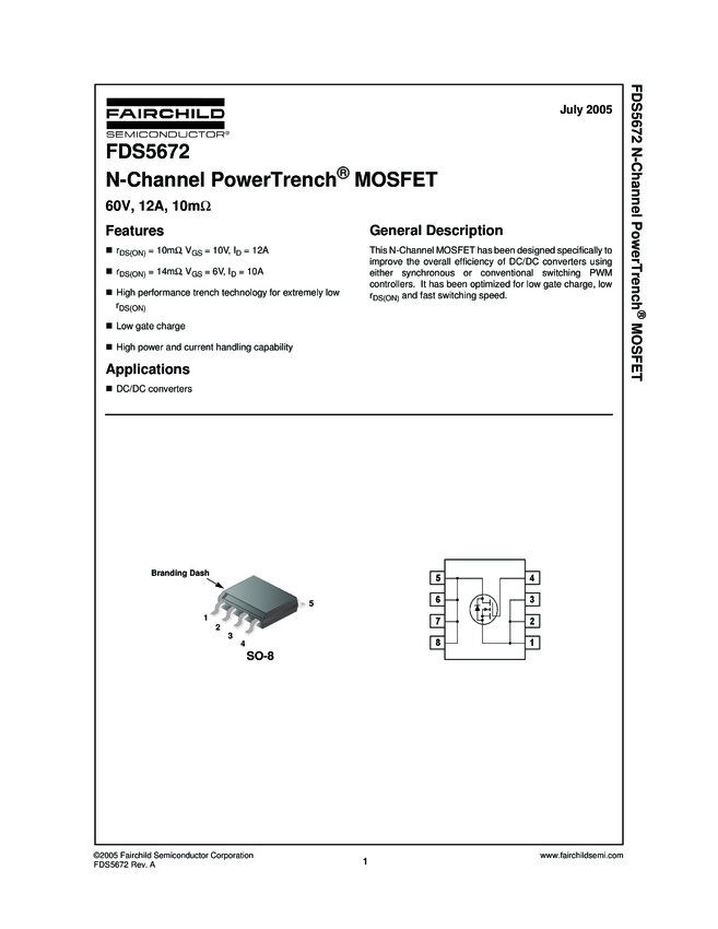FDS5672 60V N-Channel PowerTrench® MOSFET