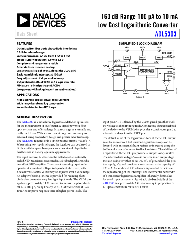 ADL5303: 160 B Range 100 A to 10 A Low Cost Logarithmic Converter