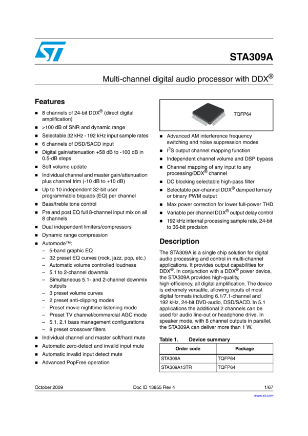 STA309A Multi-channel digital audio processor with DDX®