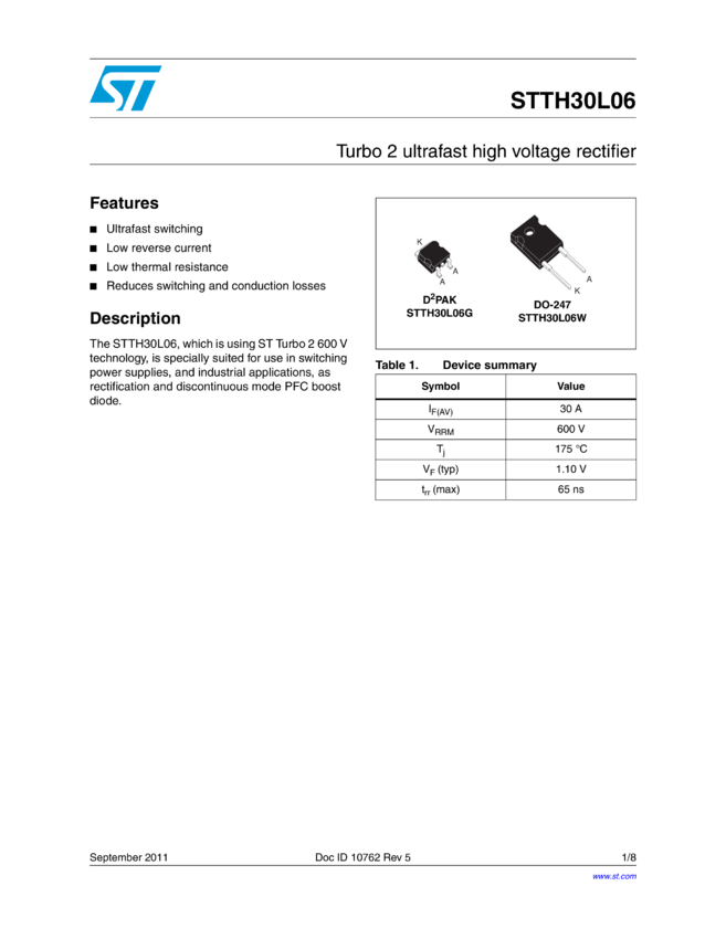 STTH30L06 TURBO 2 Ultrafast High Voltage Rectifier