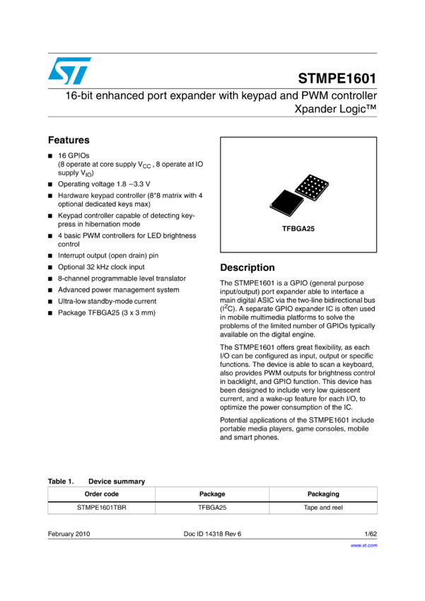 STMPE1601 16-bit enhanced port expander with keypad and PWM controller Xpander Logic