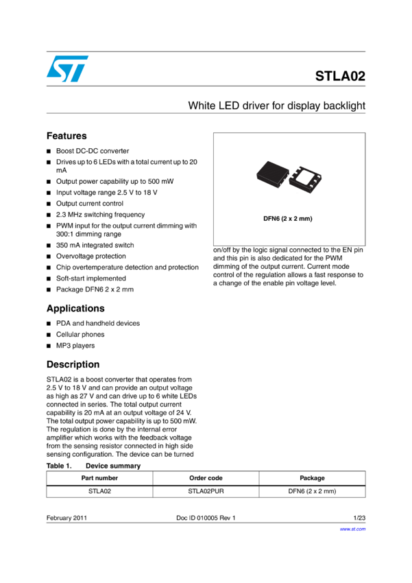 STLA02 White LED driver for display backlight