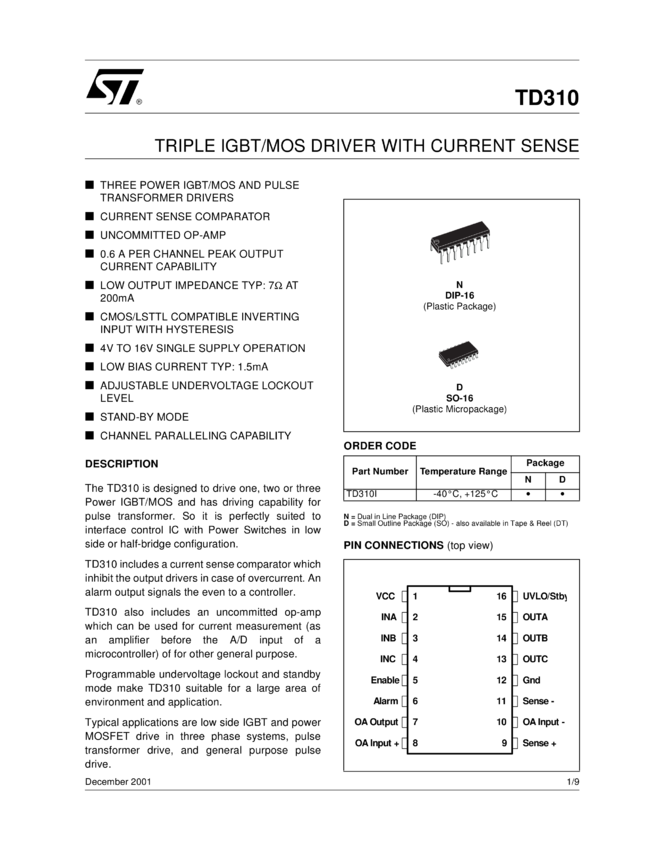 TD310 Triple IGBT/MOS driver with current sense