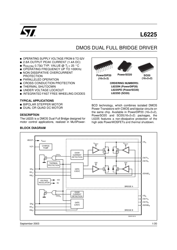 L6225 PowerSPIN: DMos Dual Full Bridge Driver