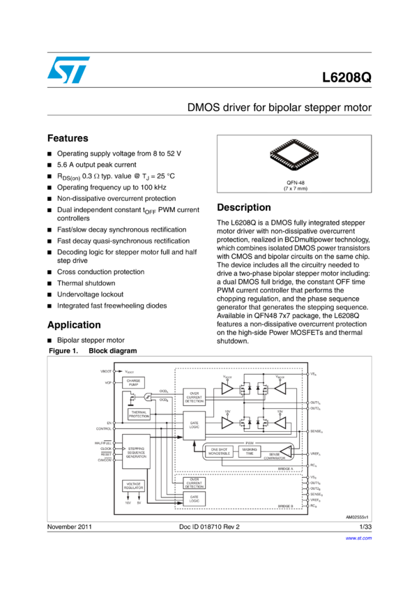 L6208Q PowerSPIN: DMOS dual full bridge driver