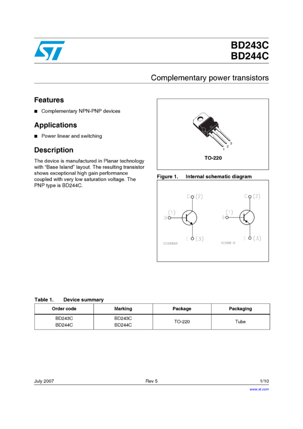 BD244C COMPLEMENTARY SILICON POWER TRANSISTORS