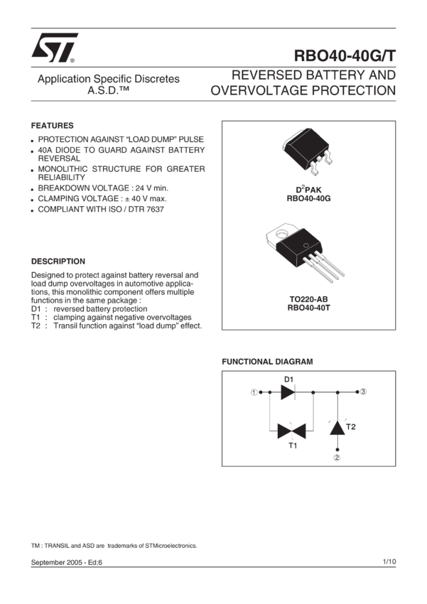 RBO40 REVERSED BATTERY AND OVERVOLTAGE PROTECTION CIRCUIT (RBO)