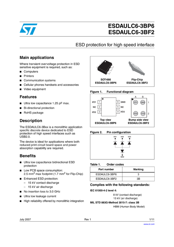 ESDAULC6-3BP6 ESD Protection for high speed interface