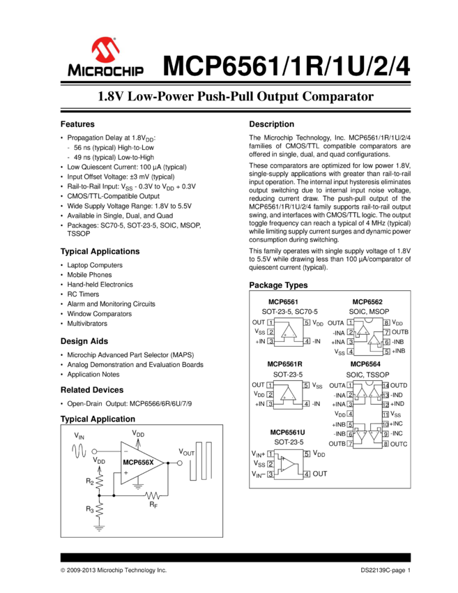 MCP6562 MCP6561/2/4 Datasheet (02/26/2013)