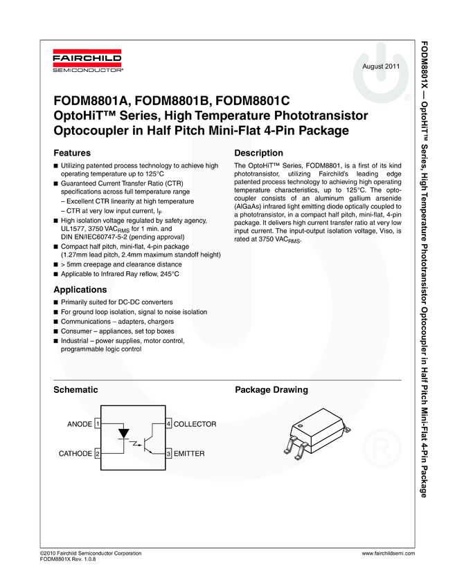 FODM8801B OptoHiT™ Series, High-Temperature Phototransistor