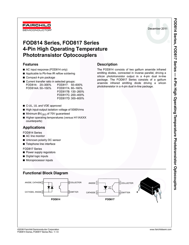 FOD817A 4-Pin DIP Phototransistor Output Optocoupler