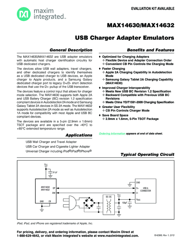 MAX14632 MAX14630, MAX14632 USB Charger Adapter Emulators