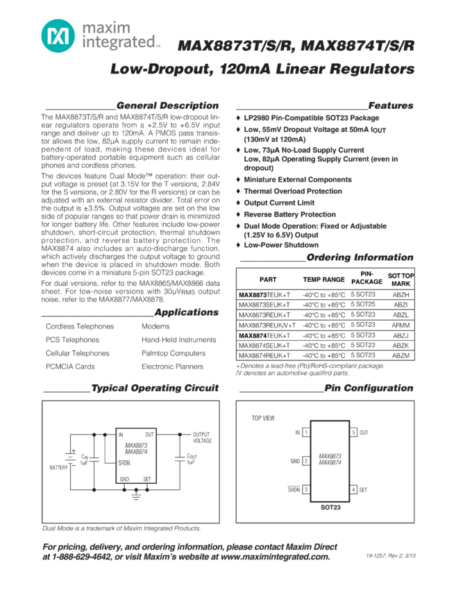MAX8873, MAX8873R, MAX8873S, MAX8873T, MAX8874, MAX8874R, MAX8874S, MAX8874T Low-Dropout 120mA Linear Regulators