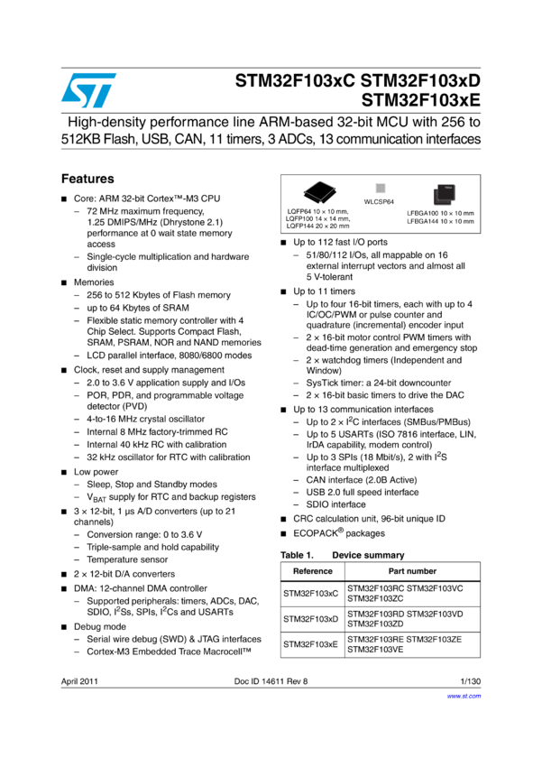 STM32F103RC, STM32F103RD, STM32F103RE, STM32F103VC, STM32F103VD