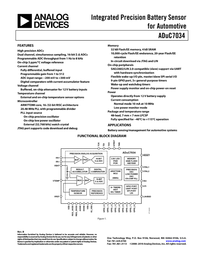 ADUC7034 Integrated Precision Battery Sensor for Automotive