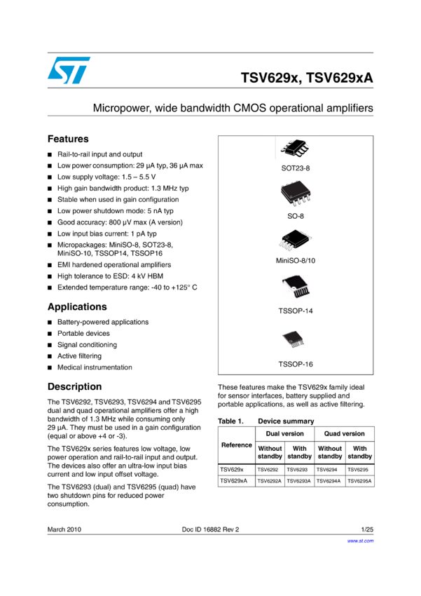 TSV6292, TSV6293, TSV6293A