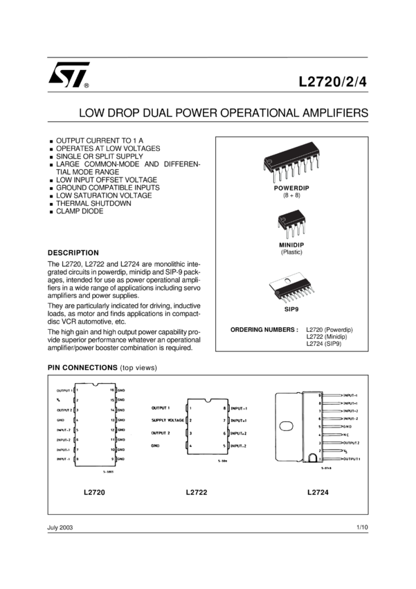 L2722 Low Drop Dual Power Operational Amplifier