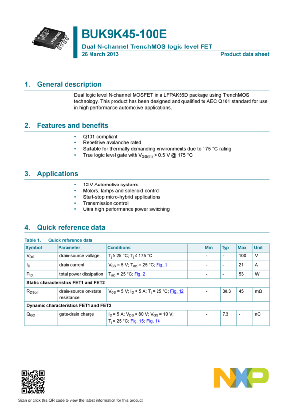 BUK9K45-100E Dual N-channel TrenchMOS logic level FET