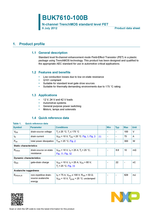 BUK7610-100B N-channel TrenchMOS standard level FET