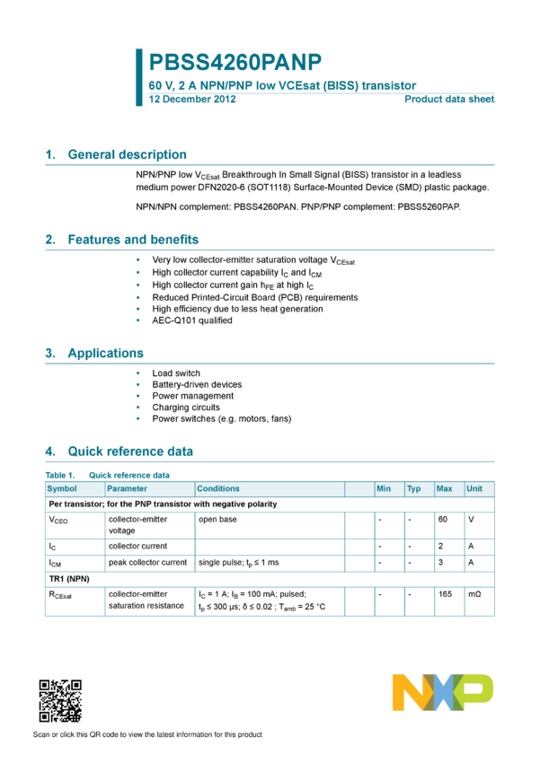 PBSS4260PANP 60 V, 2 A NPN/PNP low VCEsat (BISS) transistor