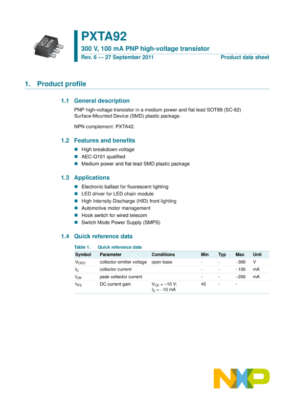 PXTA92 300 V, 100 mA PNP high-voltage transistor