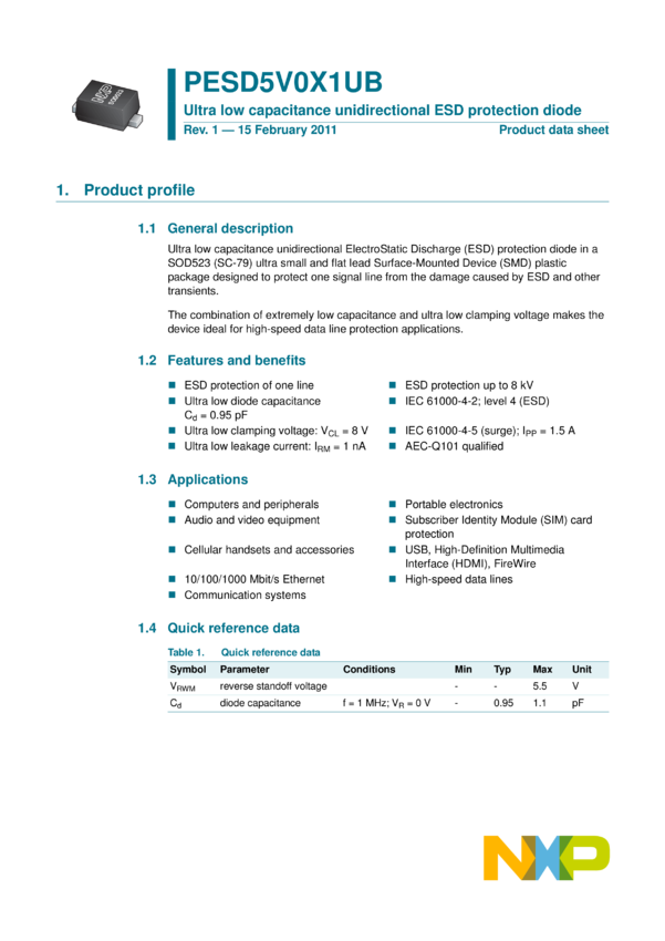 PESD5V0X1UB Ultra low capacitance unidirectional ESD protection diode