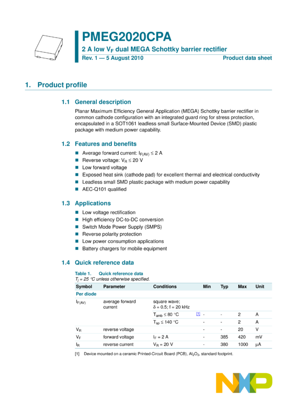 PMEG2020CPA 2 A low V_F dual MEGA Schottky barrier rectifier