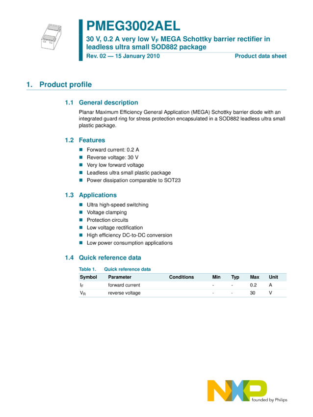 PMEG3002AEL 30 V, 0.2 A very low V_F MEGA Schottky barrier rectifier in leadless ultra...