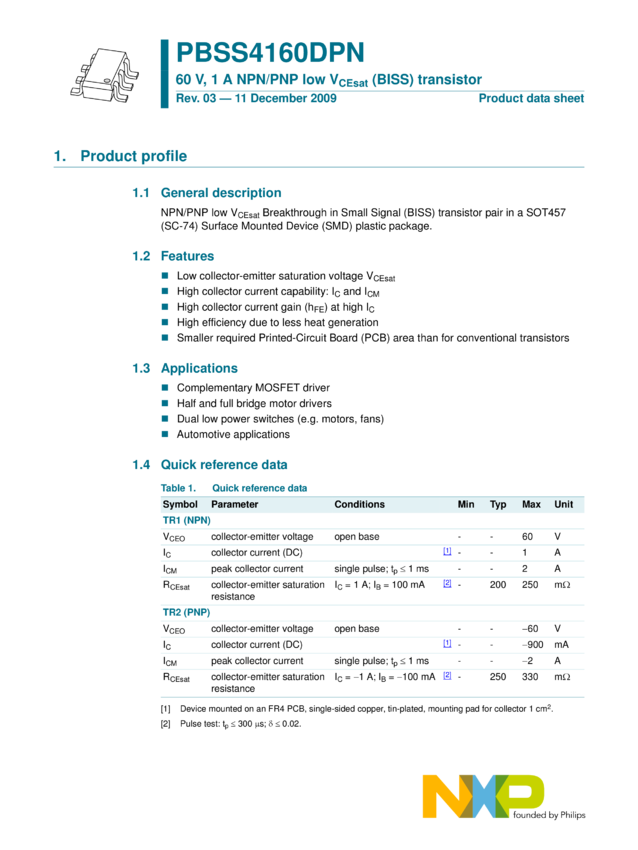 60 V, 1 A NPN/PNP low VCEsat (BISS) transistor