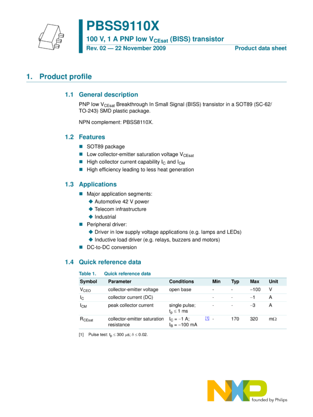 PBSS9110X 100 V, 1 A PNP low VCEsat (BISS) transistor