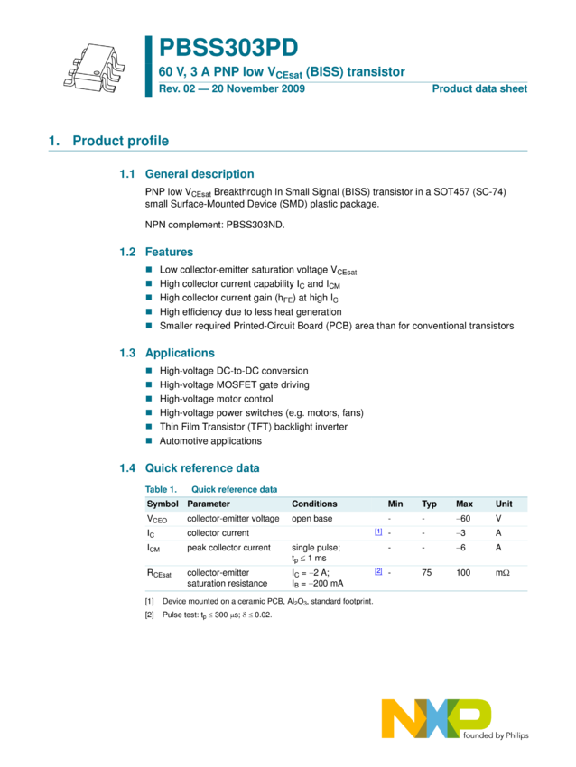 PBSS303PD 60 V, 3 A PNP low VCEsat (BISS) transistor