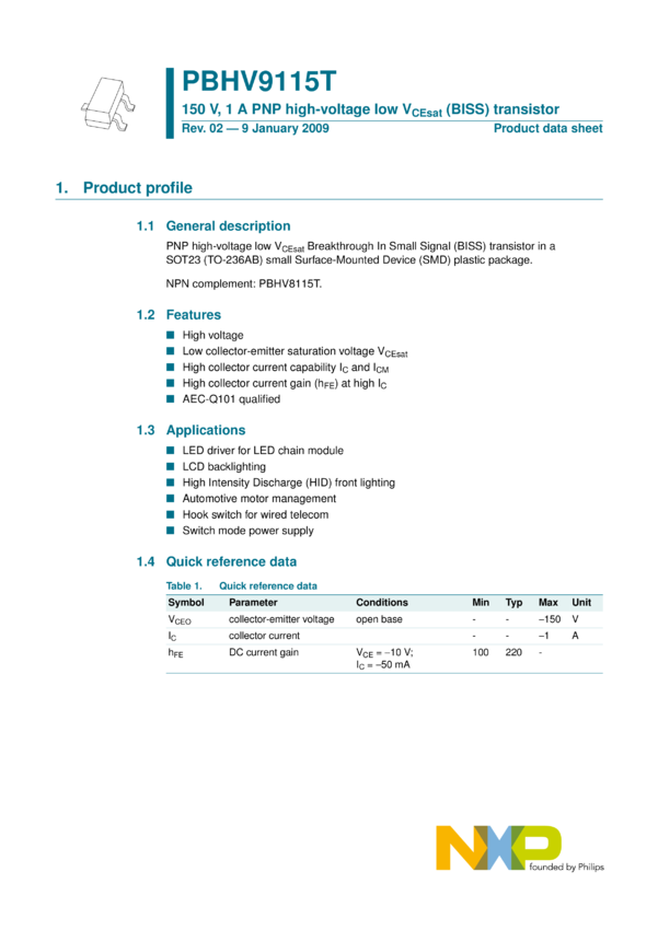 PBHV9115T 150 V, 1 A PNP high-voltage low VCEsat (BISS) transistor