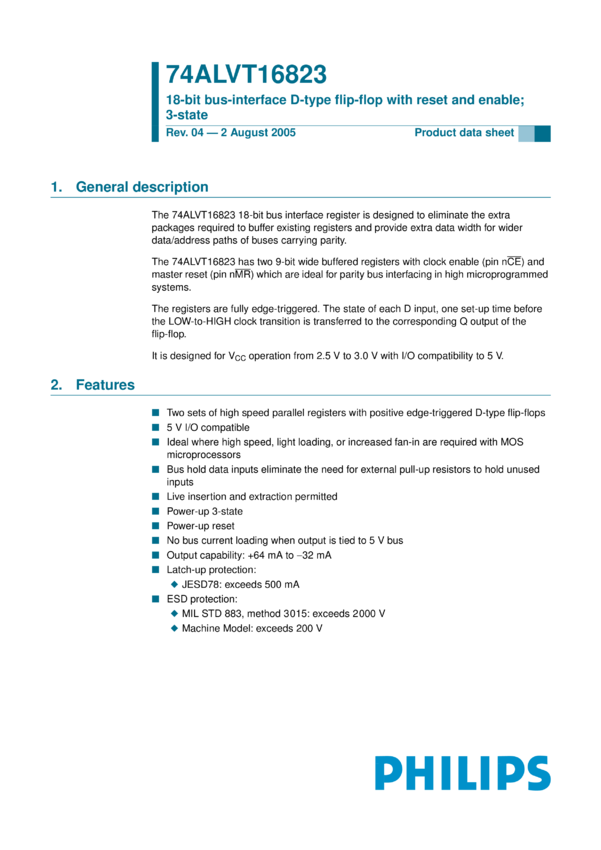 74ALVT16823 18-bit bus-interface D-type flip-flop with reset and enable; 3-state