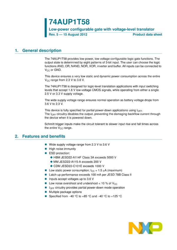 74AUP1T58 Low-power configurable gate with voltage-level translator