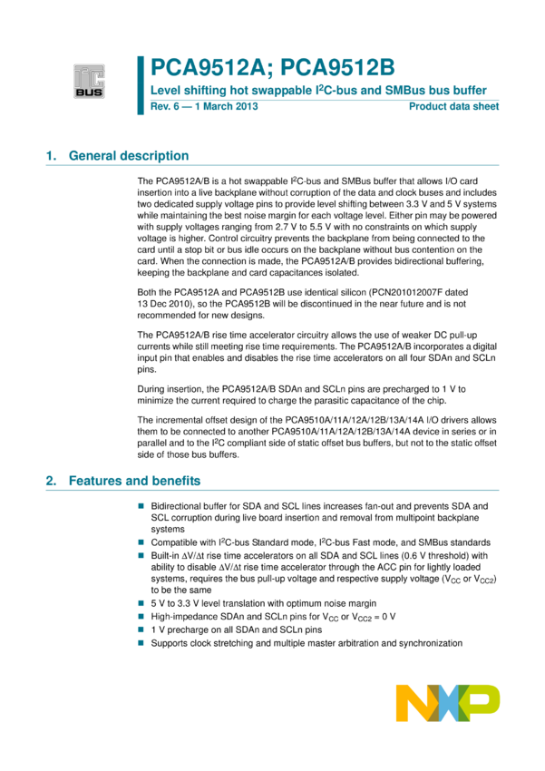 PCA9512A Level shifting hot swappable I2C-bus and SMBus bus buffer