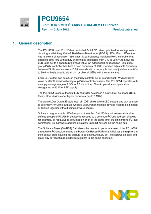 PCU9654 8-bit UFm 5 MHz I2C-bus 100 mA 40 V LED driver