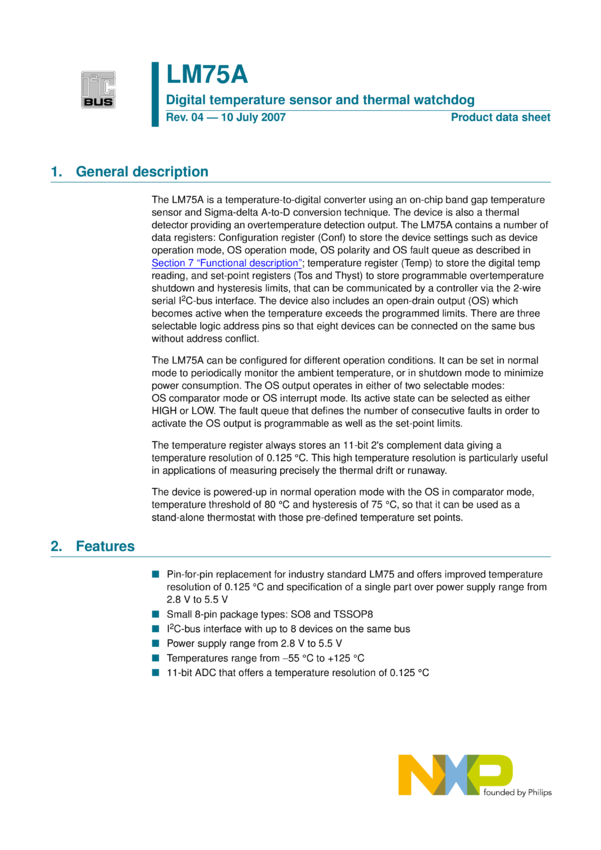LM75A Digital temperature sensor and thermal watchdog