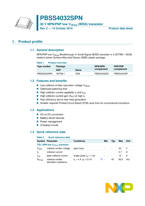 PBSS4032SPN 30 V NPN/PNP low V_CEsat (BISS) transistor