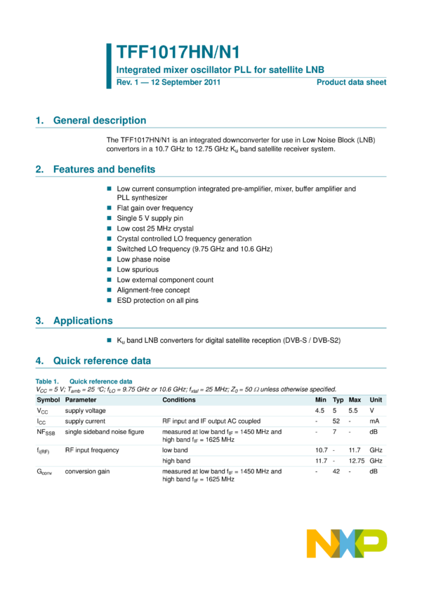 TFF1017HN Integrated mixer oscillator PLL for satellite LNB