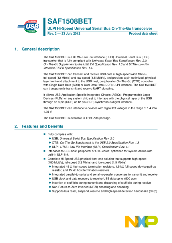 SAF1508 ULPI Hi-Speed Universal Serial Bus On-The-Go transceiver