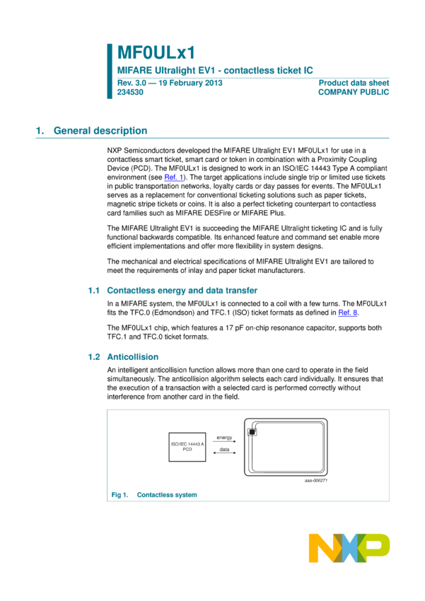 MIFARE Ultralight EV1 - Contactless ticket IC