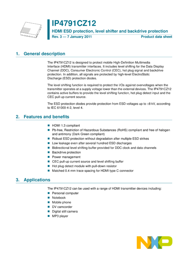 IP4791CZ12 HDMI ESD protection, level shifter and backdrive protection