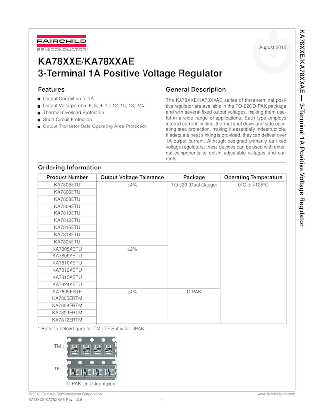 KA7805E 3-Terminal 1A Positive Voltage Regulator