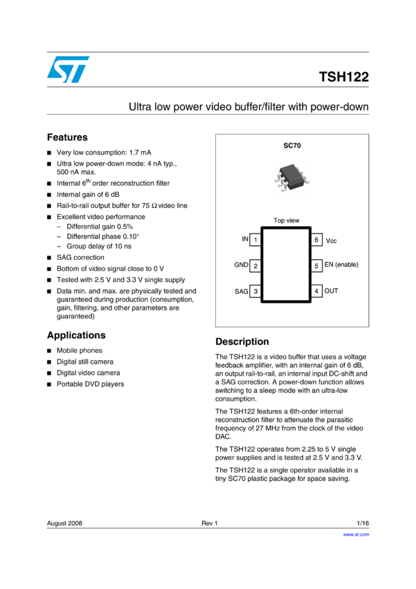 TSH122 Ultra low power video buffer/filter with power-down