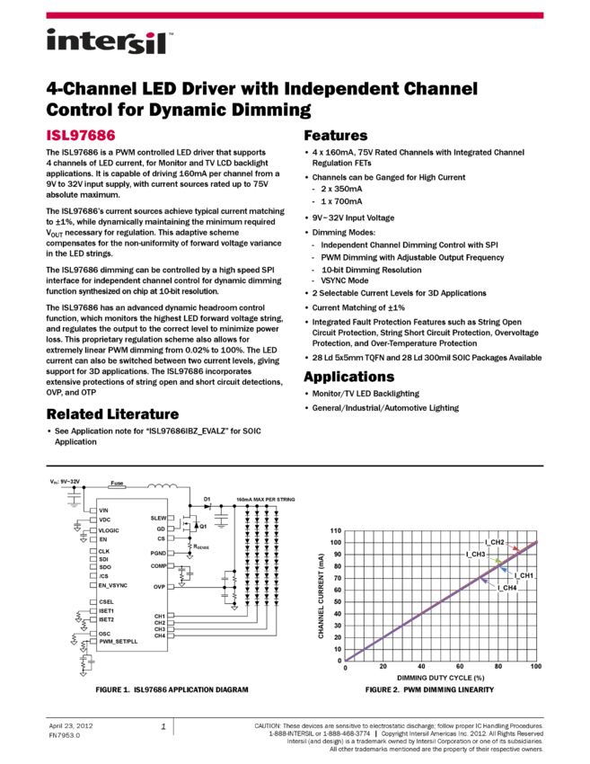ISL97686 4-Channel LED Driver with Independent Channel Control for Dynamic Dimming